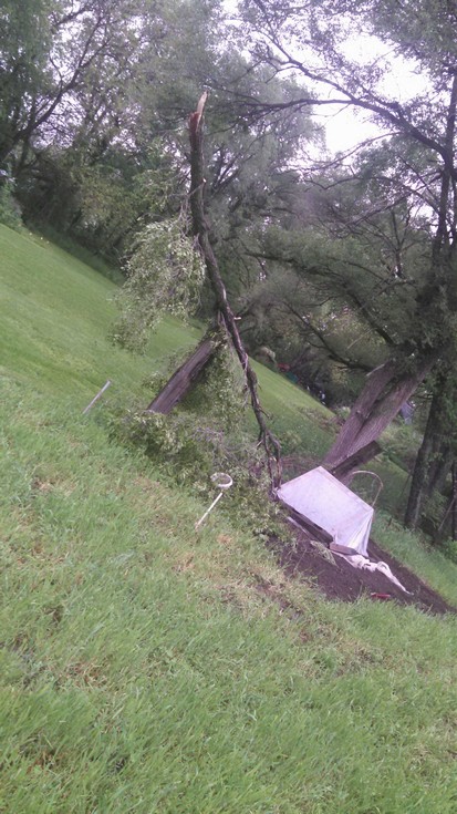 800*neilly had a close call. no storm just fell from about 30' up.