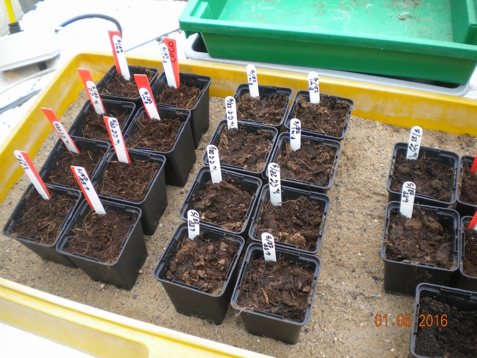 Giant Tomatoes sown in the two different composts inside my propagator. May be next week before any germinate.