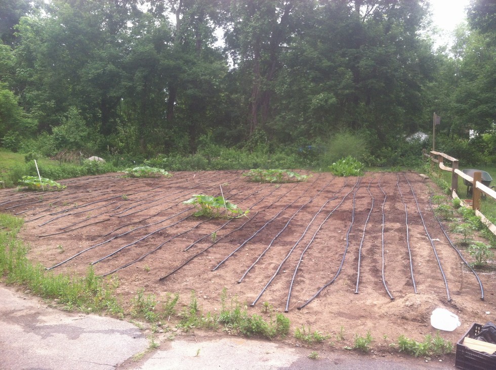 Hoops are off. Drip tapes are in and leaks fixed. Note to self take better care of the drip tape in the off season.