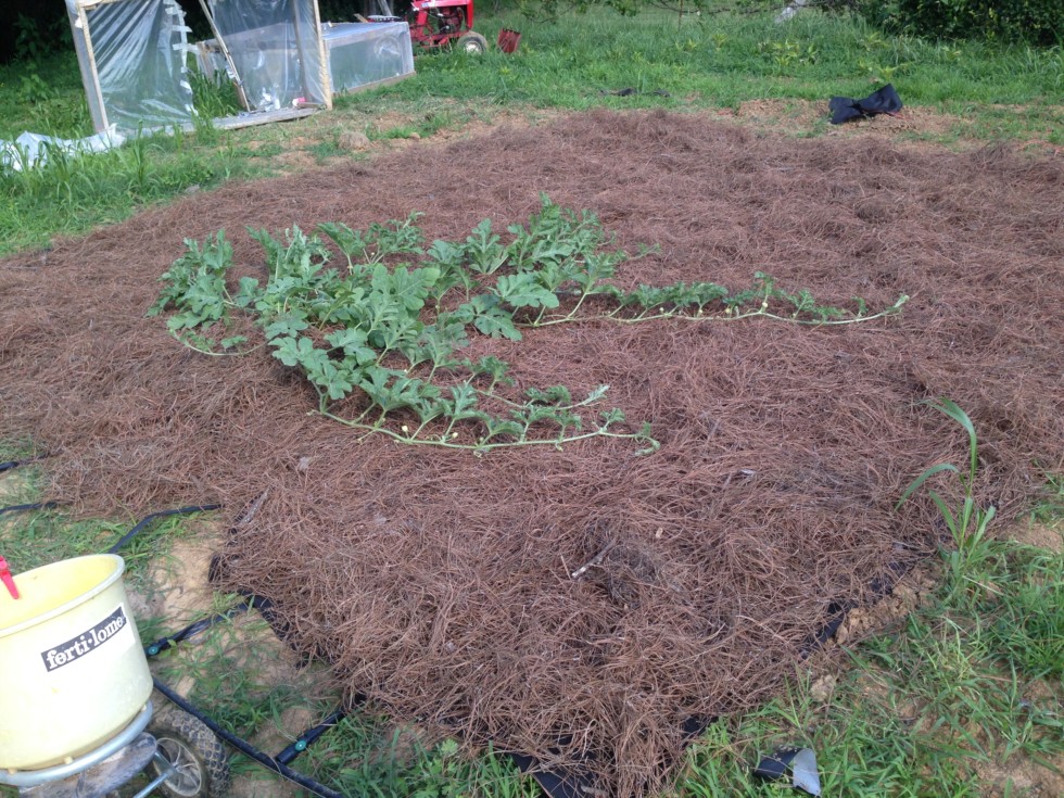 Lots of hard work on a 93 degree day ! Melon patch is looking great !