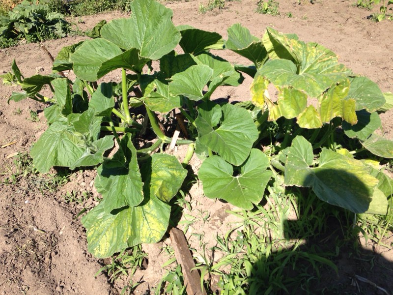 1533 Kline squash plant starting to move now. 8-9' long. Had a week of cold and wind which I'm just happy the plant survived.