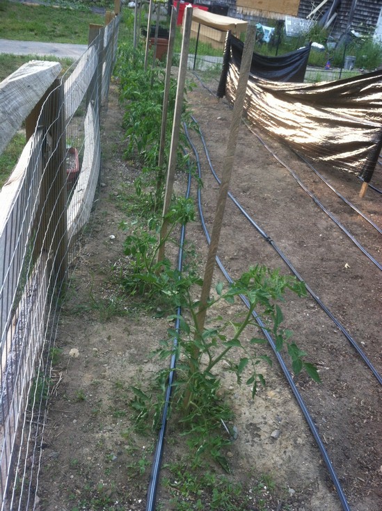 The 3 tomato's in the foreground were planted 1 week after the ones in the back. They are different varieties but I don't think that's that problem if it even is a problem.