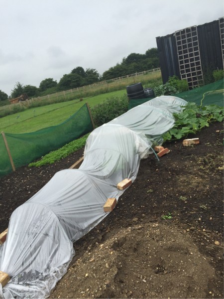 Weather still a bit meh. The cloche had an extension for the main vine tip - and it's just shy of 12 ft, by an inch or two.