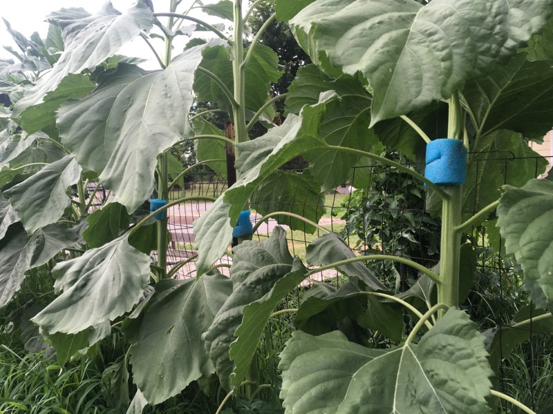 Used some half pool noodles and some baling wire to add stability to the giant sunflowers.