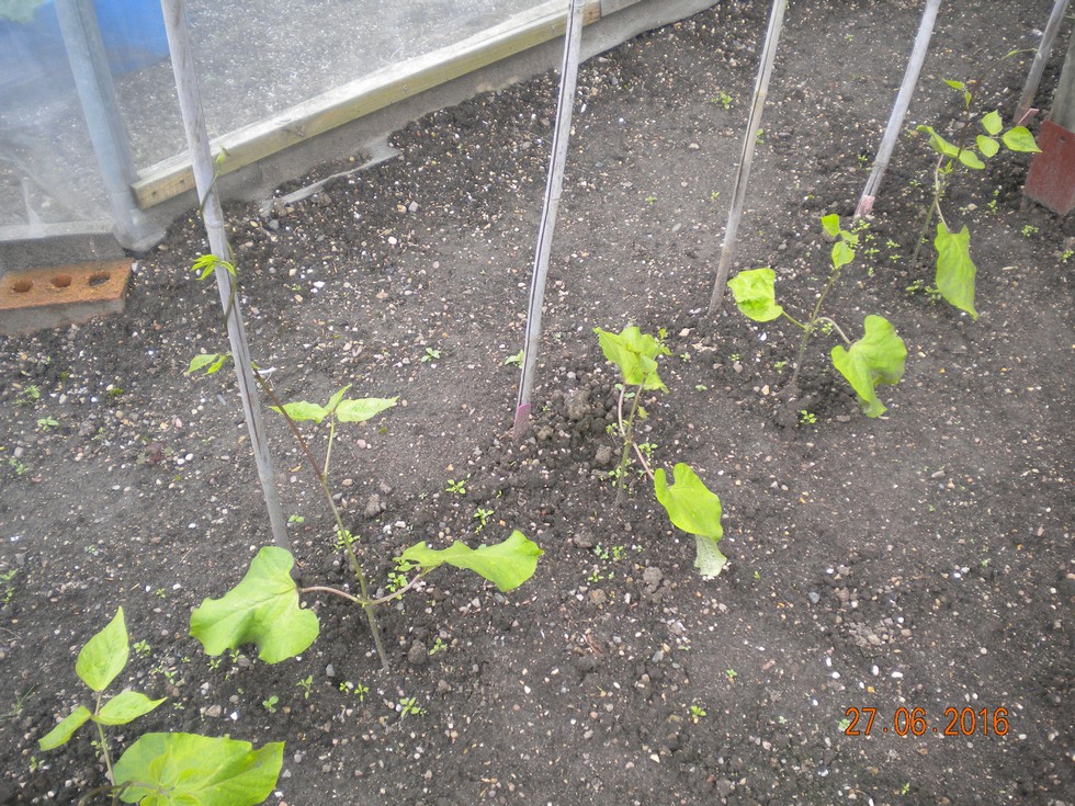 Runner Beans just reaching for their canes, have started a few later ones today.