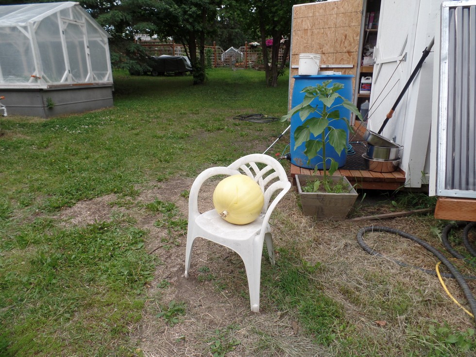 last cull off the 2145 B plant..this one felt heavy..solid, now out of 2 -2145 plants down to just one kin for the season... as the 2145 A is getting pruned way back, it is a great plant . but I cant get a pumpkin to grow off it..?