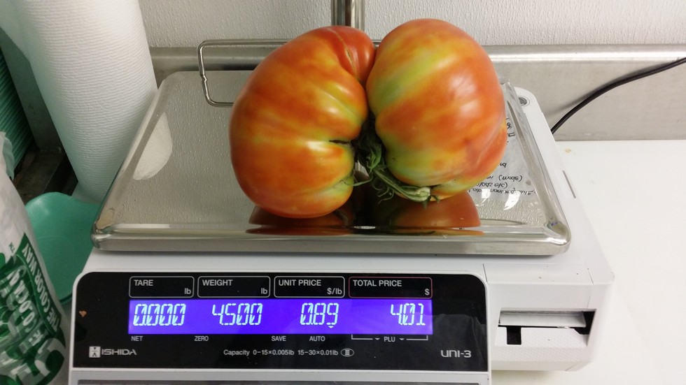The second 4.59 which is my personal produced this one. Only.1 pounds from a new PB. Didn't think it was close at all. One early tomato left and it's still a couple days out if she doesn't split.