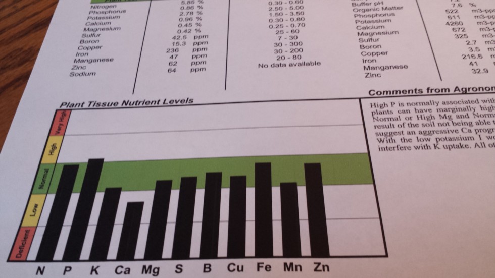 I have my tissue test back today from Spectrum Analytiic pretty happy with it . I just need to keep up with my nutrient application and need to be more agressive calcium .