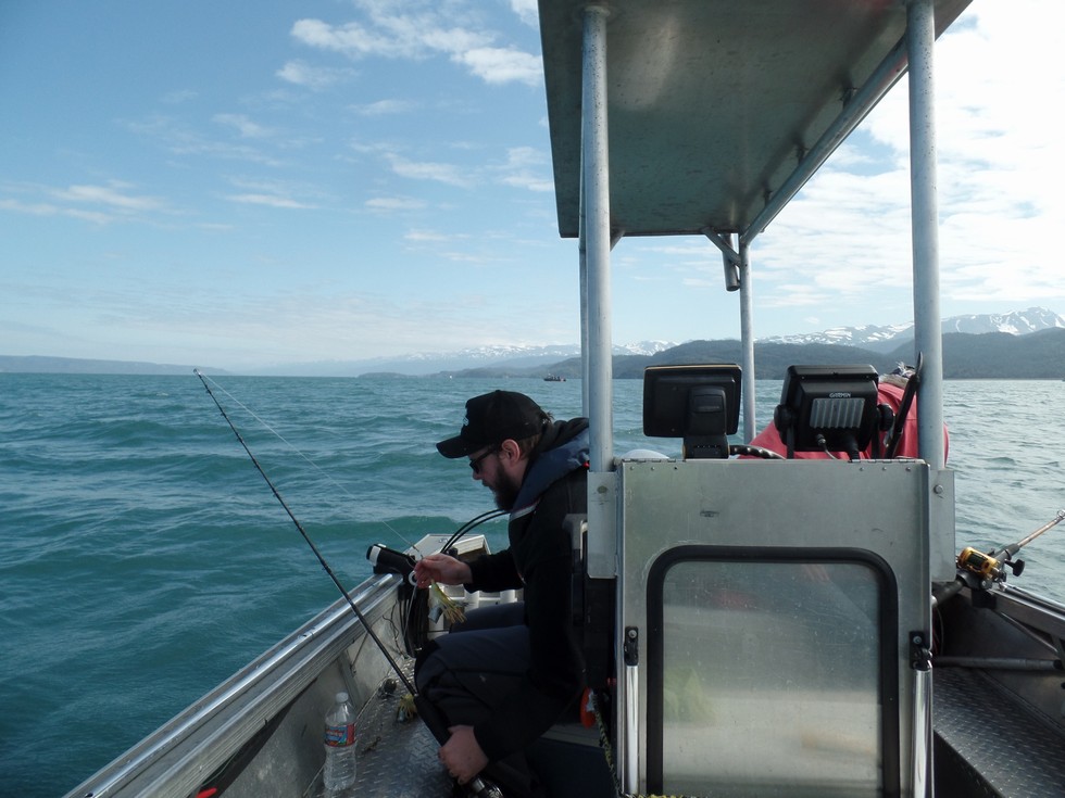 Rowan , my oldest son getting his line set