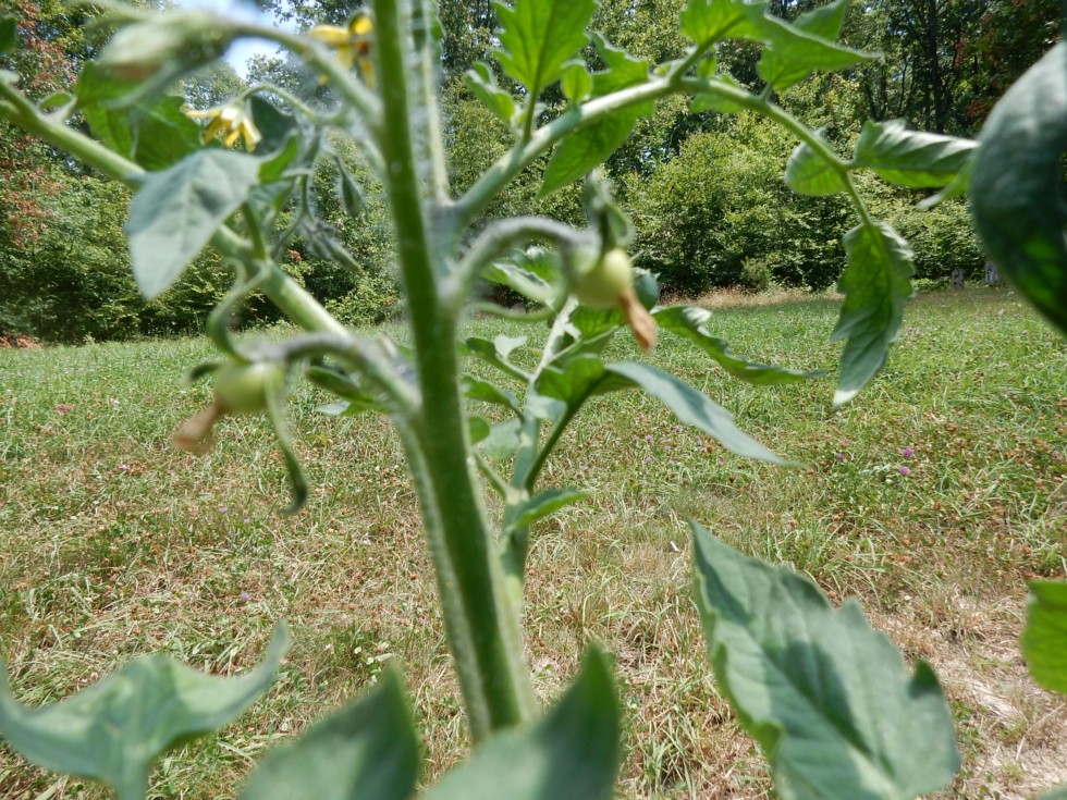 I DID however, start to get tomatoes this week! My initial thoughts were that if this plant were going to fail, it would happen at the time of fruiting because that would be the heaviest draw of energy and any incompatibilities would be magnified. These tomatoes prove that the two plants are indeed very closely compatible and gave my project at least a 50% success for the first year out. I'll still be keeping a close eye on them, but I don't see why they'd get this far and fail now. Next year, I'll try allowing the suckers to grow after the graft has taken, but this year I wanna keep it the same until it's finished.