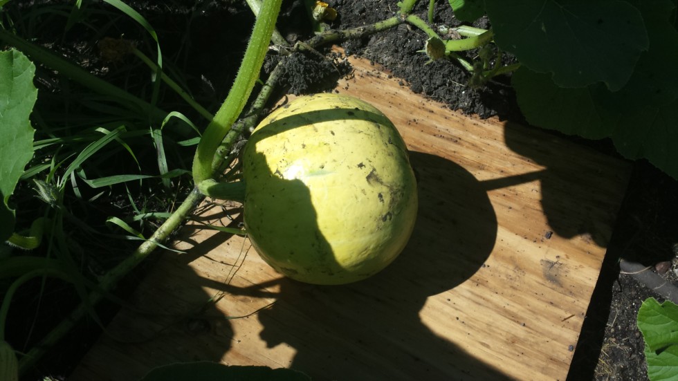 Added a board this is 8 dap on a gigantic ghost pumpkin variety