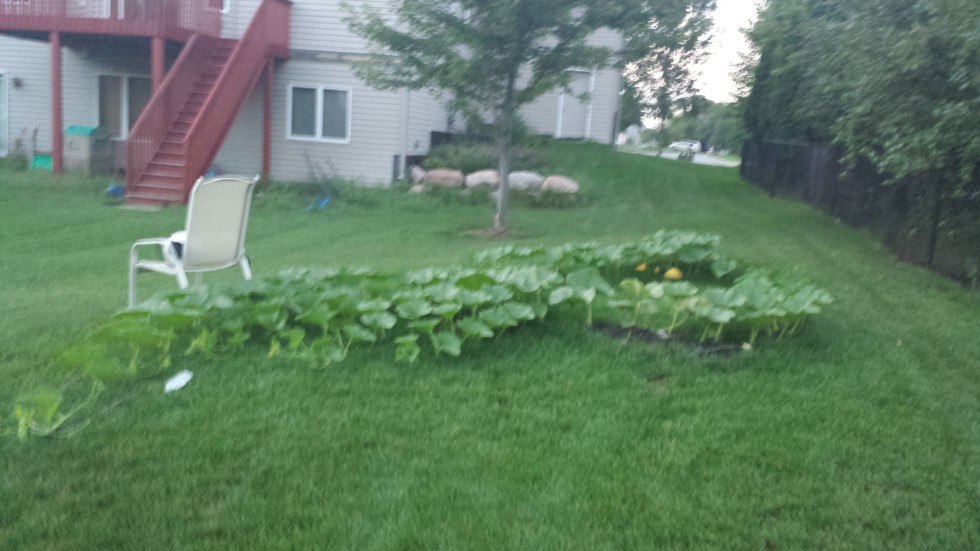 Yard #2 is really taking off shooting side vines like crazy here and adding some inches hopefullly that will equate to a big pumpkin