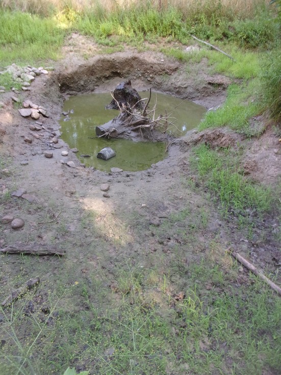 my minnow pond / overflow pond . the raccoons are here at night trying to catch the minnows about 4 inches of water left