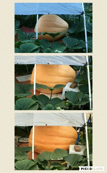 Bonino update. 54 DAP=365OTT (1047# team pumpkin chart) pretty excited I may have broke 1000# my first year!!! Kin still doing around 20# a day. Bad news. Went away for 2 days and we have received over 2 1/2" of rain since yesterday with crazy humidity and heat indexes near 100. Came home to a soft stump which I cut open and scraped out the ugly stuff, sprayed with peroxide, and dusted with sulfur. Still have air mover blowing 24 hrs a day. Have a bunch of leaves with split stalks that fell over in the storms. Kin still looks great so I'm hoping I can save as much plant as possible. Drenched this afternoon in the rain with Clearys and Terrazole. Pics are from over the last 2 weeks. Once again any other suggestions feel free to let me know!!! Truly appreciate all the help this year.