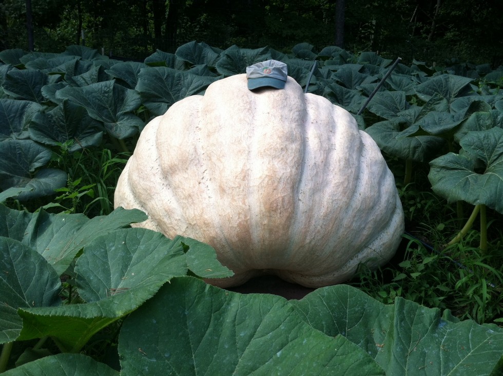 This is our biggest pumpkin. The plant on this one is still in great shape. This one is approx 1050 pounds.