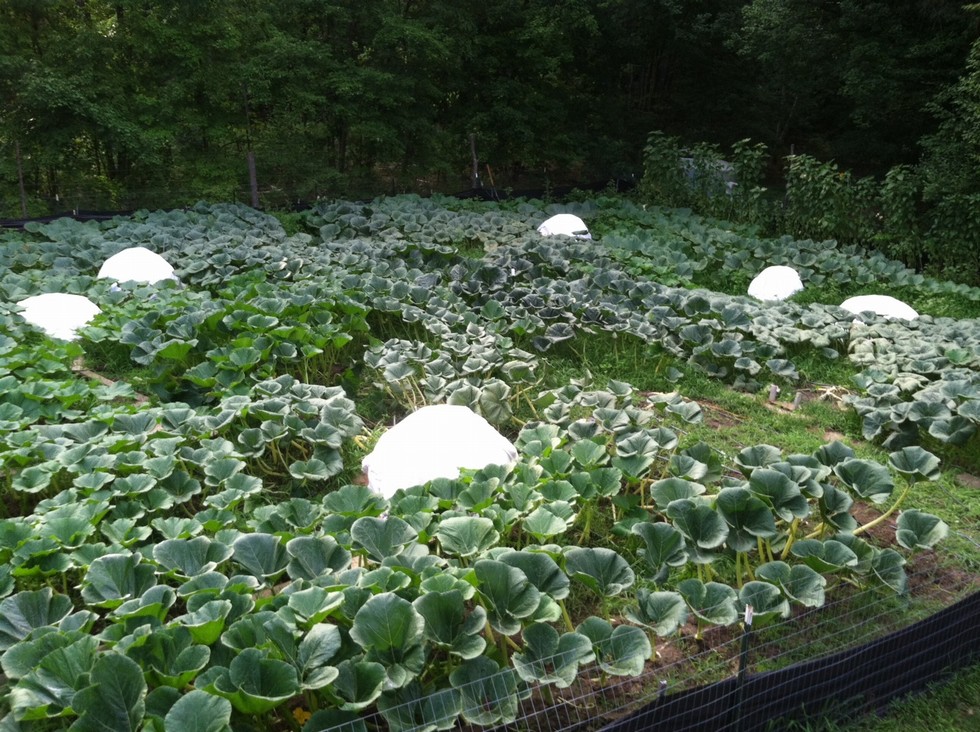 View of the patch from the deck. Love looking out at all the big white sheets.