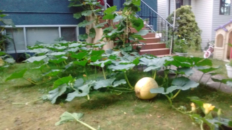 Cancel that confirmed pollination on the Carly. Final pumpkin aborted about 19 to 21 DAP, 117OTT. Uncertain of dates because was on the coast all last week. Heartbroken. It had awesome shape and vigor. Thankfully I used Richmond Dave's seed for backup. The 10:40 is slowly gaining. Don't think will beat my personal best. It only has four square feet of soil and very little salad. Lessons: culled other pumpkins too early, and used unproven seed for main plant, to big of a gamble.