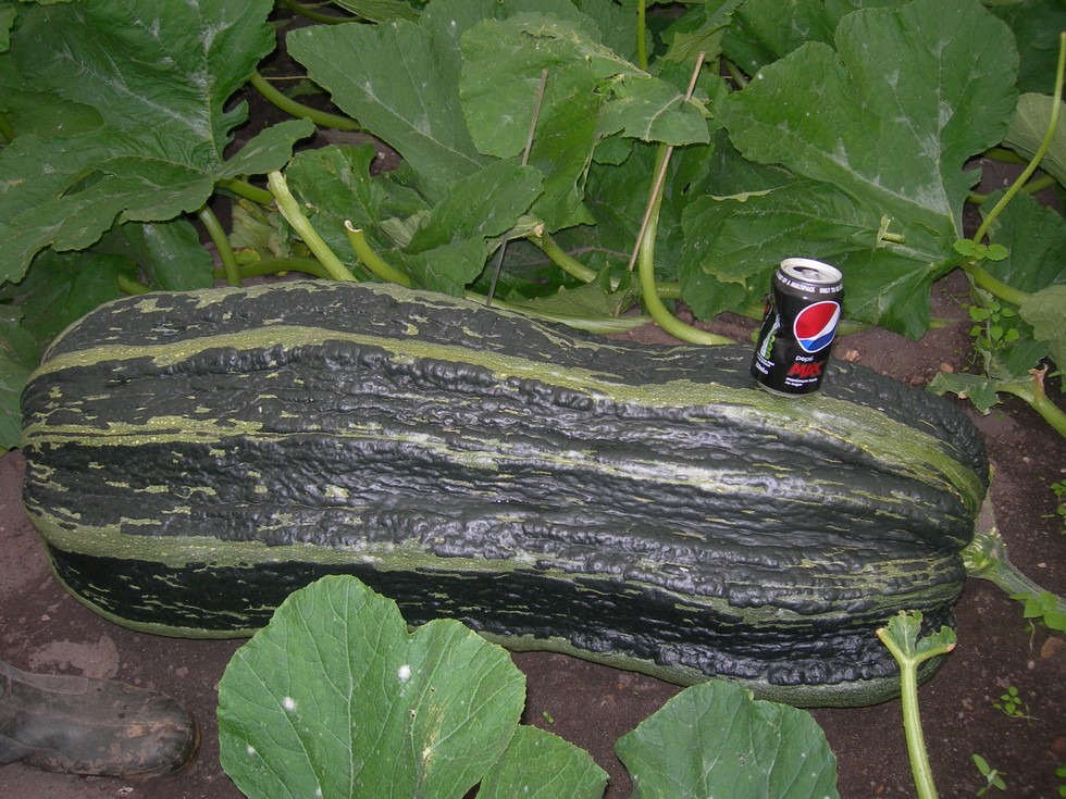 Well of the four stains of marrow seeds ive been growing ive had mixed results. This striped marrow grew from a seed from a grower unknown to me, was from the seed I bought off ebay. I only planted one of these seeds and ive a fairly nice marrow which is 38 inches long. It grew for about four weeks and I think its just about done now.