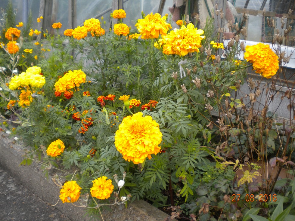 There was a few large Marigold seed in the EGVGA package, Mary has grown these outside the greenhouse, look good and supposed to deter aphids.