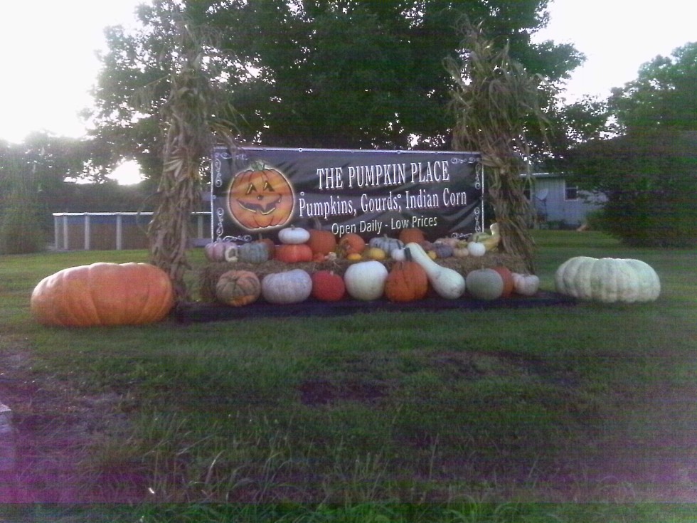 The entrance sign to the pumpkin place with the 536 on the right and the 319.5 Cinderella on the right.