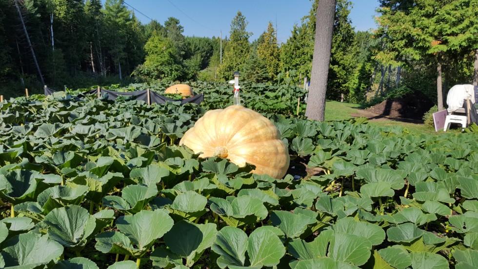 Sunrise this morning. Plants still look very healthy for this time of year. This is the 1625 Gantner with the 1463 in the background. The Gantner is really closing the gap. 800" between the two fruit now.