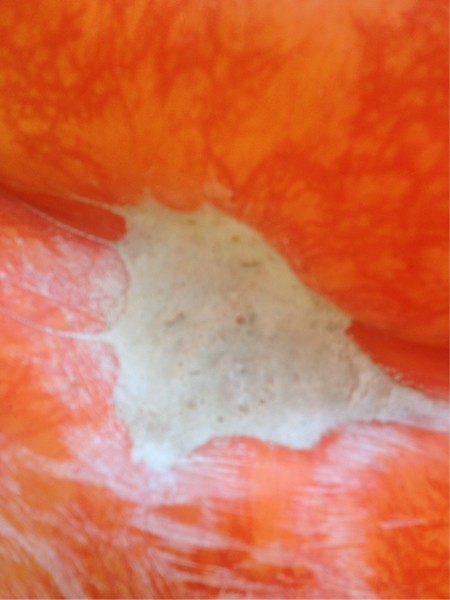 Cleaned with peroxide, dried, and packed with fungicide. Hadn't wept, powder was still dry after 2 hours so cover went back on until I can get a fan on her.