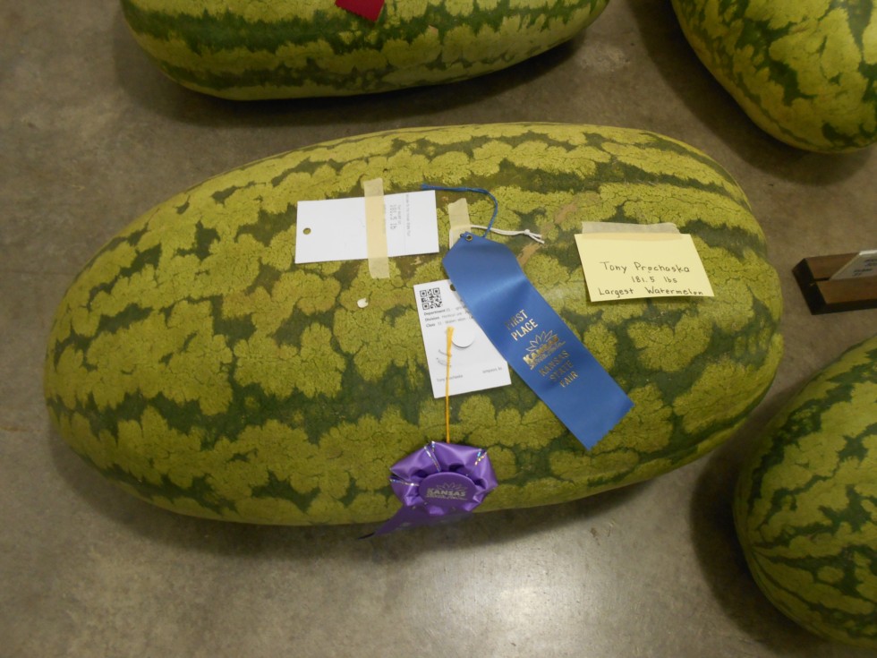 Largest melon at the fair 181.5 lbs. 3.5 lbs. from the state fair record. Should have left it on longer. ott had it at 193.5 so went a little light. Have one that is bigger for Oct. 8