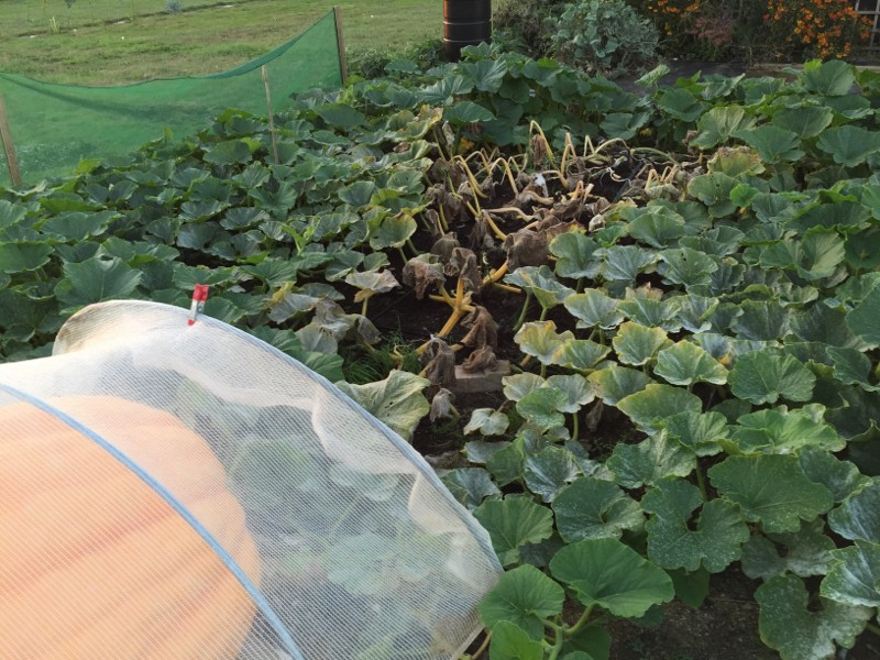 Full die back from the area under the cloche cover: have to review time under next year, thought it would help push temps up in cool UK and therefore growth - but really seems to have aged the leaves. Umm.