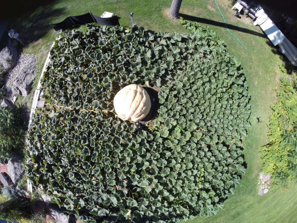 Overhead view of the 1625 Gantner plant. I've loved this plant all season. The old leaves are starting to wear down, but really, it's almost October and the plant looks exceptional. After I looked at the overhead pictures on the GoPro, I realized how small the fruit look from above. This plant is around 1200 feet.