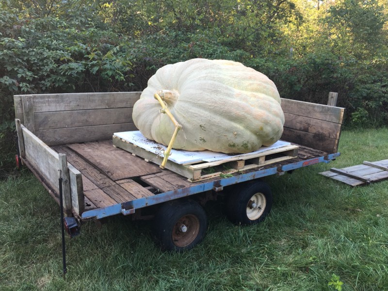 It barely fits on my trailer, by like two inches. As usual I know this pumpkin could have been even bigger. I say it every year but late season plant health remains my biggest hurdle. I am organic and had planned on spraying a lot of Companion overhead this year but my pump went down mid-season and I never got it running again. The list of offseason projects and improvements is long