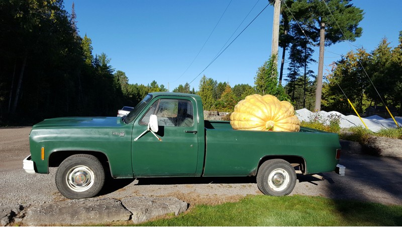 Loaded up and ready for the weigh-off. The '76 GMC didn't drop too much. I hope it's the extra leaf springs and not the lightness of the pumpkin, but I'm thinking the latter.