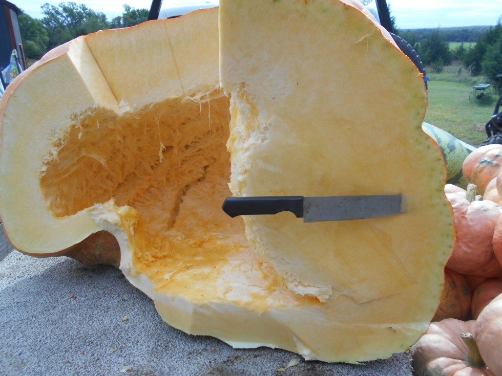 12 inches thick on stem end but not much on bottom. Harvested seeds but it only had about 20 viable seeds? The rest were empty. and only about 50 of them.