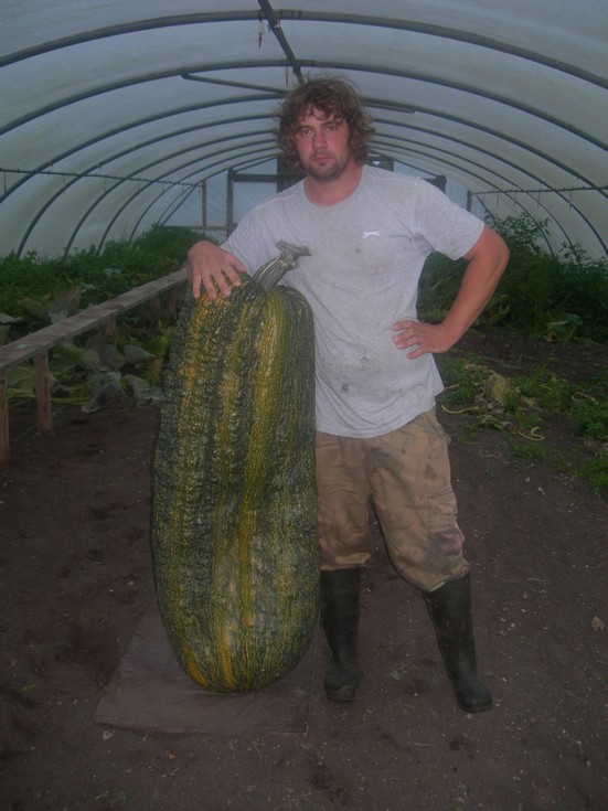 This is the best marrow that I grew from Peters seed which Weighed in at 145 lbs. This one had splits around the stem also but I don't think any of them were terminal. Im not going to save seed from this one as theres a little orange trying to come through