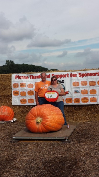 Joy weighed her 150sq. ft challenge pumpkin yesterday at Dundee 791lbs 12 % heavy