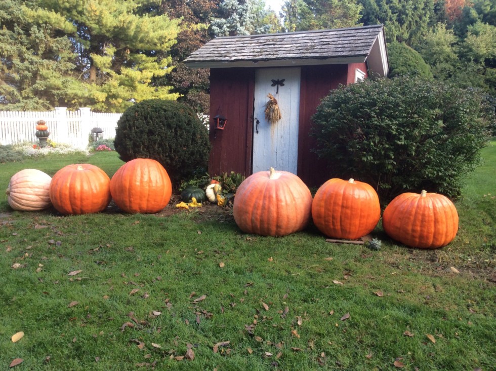 Bringing in the display pumpkins for in front of our "5 holer" outhouse. They aren't real big this year but they sure are pretty.