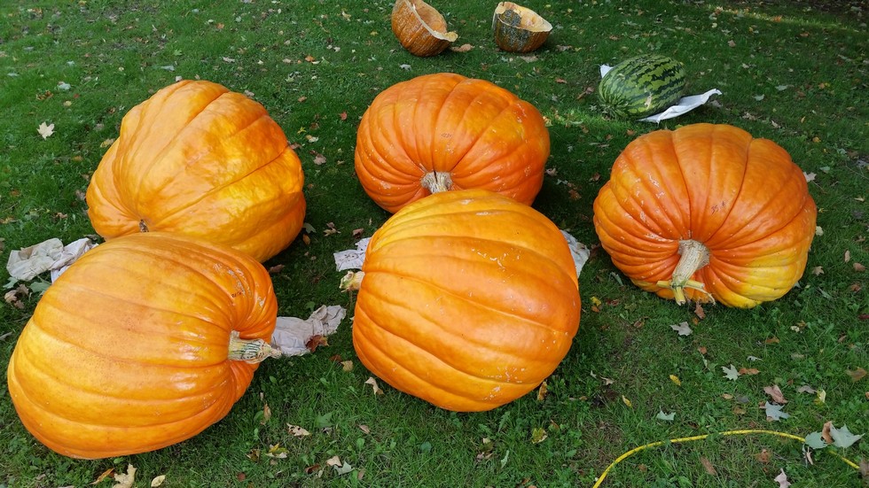 When the stem split began I assumed I would lose the pumpkin so I let everything else on the plant set. I ended up with these 5 between 265 and low 400s, as well as a few smaller ones and 2 other blossom end split ones about the same size. The plant really wanted to produce.