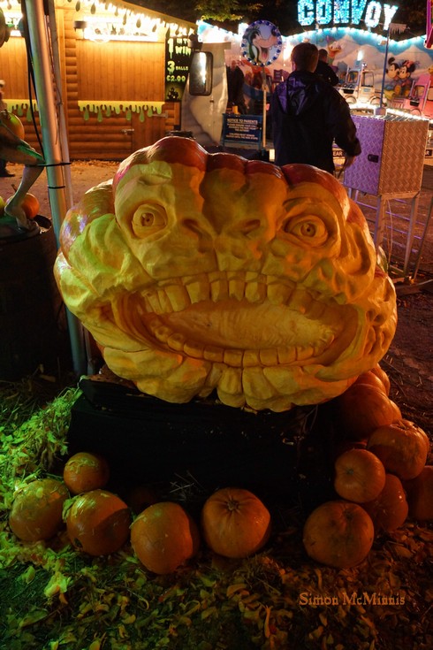 725lb pumpkin carved for Guy's Thatched Hamlet in Lancashire