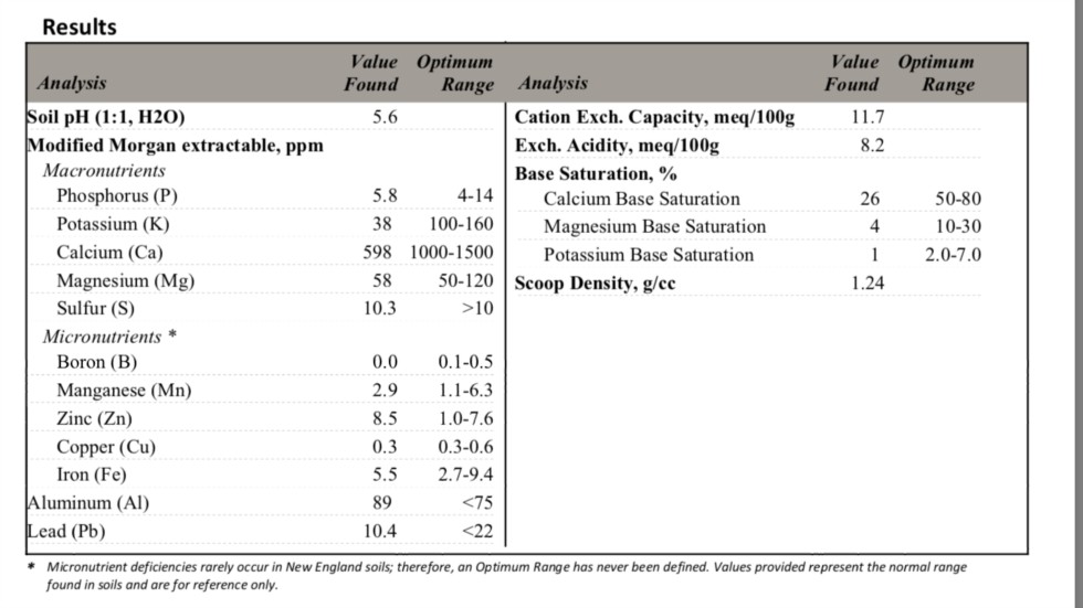 I'll be growing 2 pumpkins next year. Here's the soil test for patch #2 which has been used for tomatoes for the past 2 years.