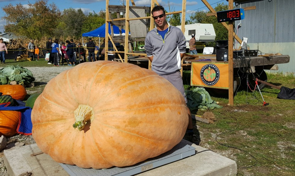 This one still surprises me. Didn't expect the weight. Love the shape and colour. The back side was even more orange. I'm glad I finally got one to the scale from my 1463. This seed was my best in 2014 but I accidentally rounded up the plant and killed it. Last year it was again my best performer but split at 1572 (14% heavy as well) at the end of August. This year I made it to the finish line. I've seen 7 of the 1463 offspring and they've all been orange. My 1572 last year probably the nicest orange pumpkin I've seen up close, that picture is at the top of the page.
