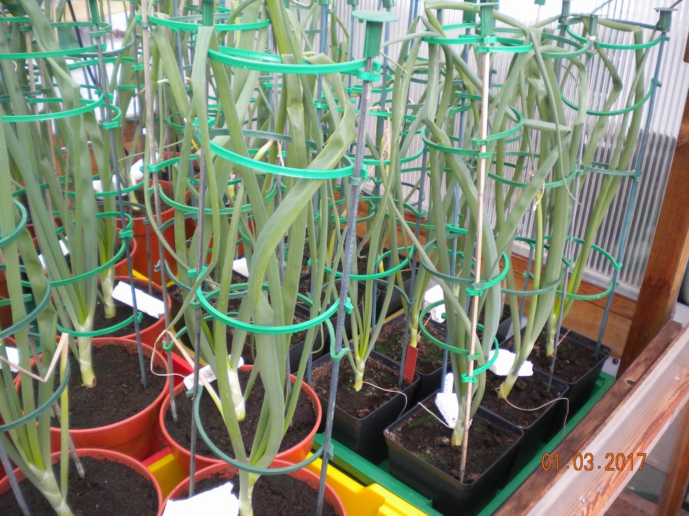Exhibition Onions still in my cabinet, just potted largest into 7inch pots m3/JI compost.