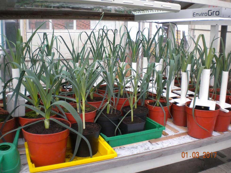 Pot Leeks and Long Leeks, most now in 9inch and 7inch pots. Started with insect predators today as Thrip found on several.