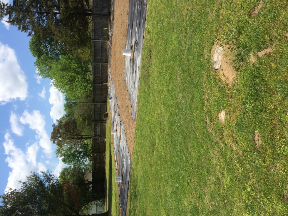 First 4 plants planted today with a open bucket protecting them from the wind. Our first 4 are a 255 Mitchell, a 282 Dawson, and (2) 274 Kents. Next wave should be ready to go in about a week.