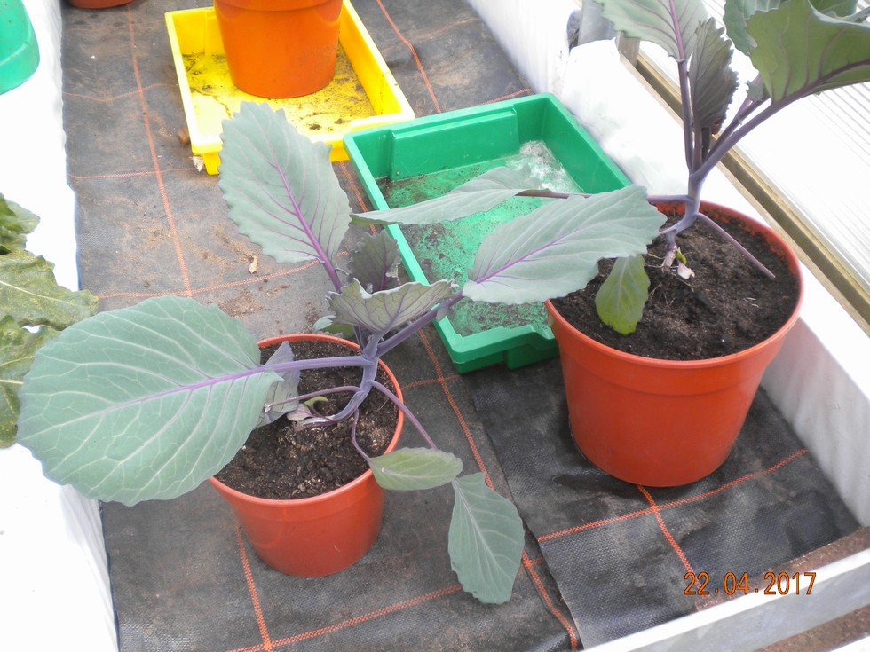 Potted on my red Cabbage into 9inch, still not root bound but will stand in these for 2-3 weeks will soil warms up outside.