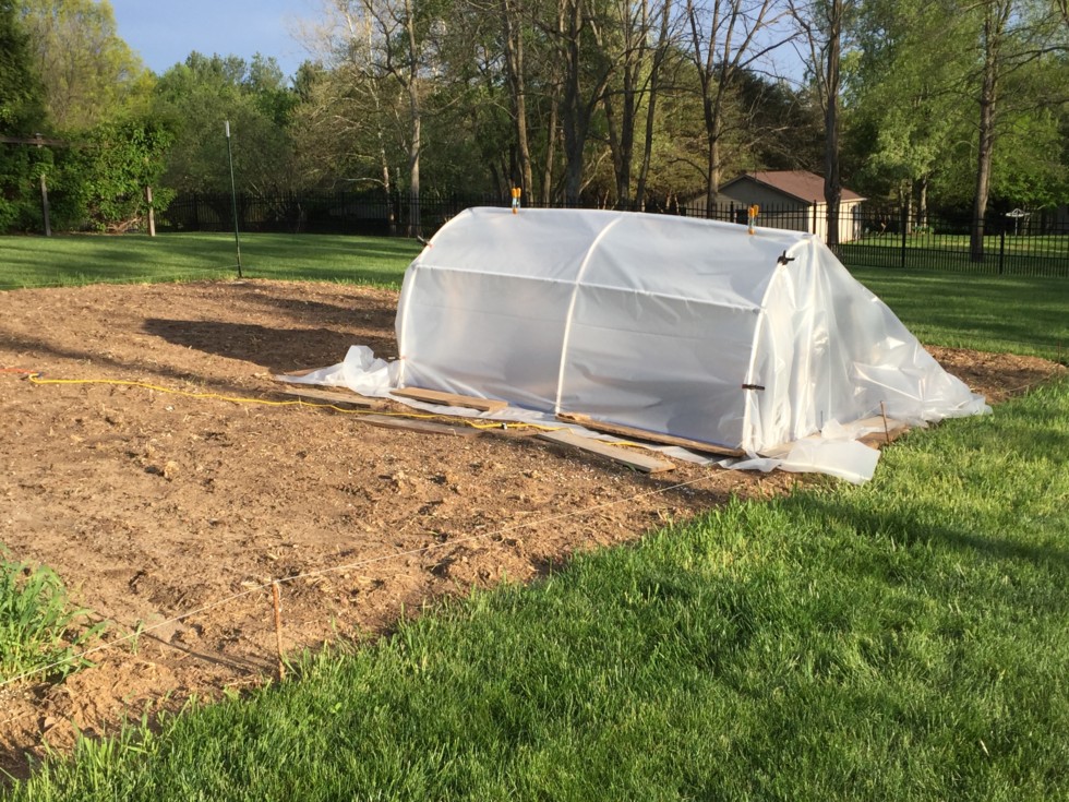 Hoop house set up on Patch B. My AG will go here. Soil heating cable here also.
