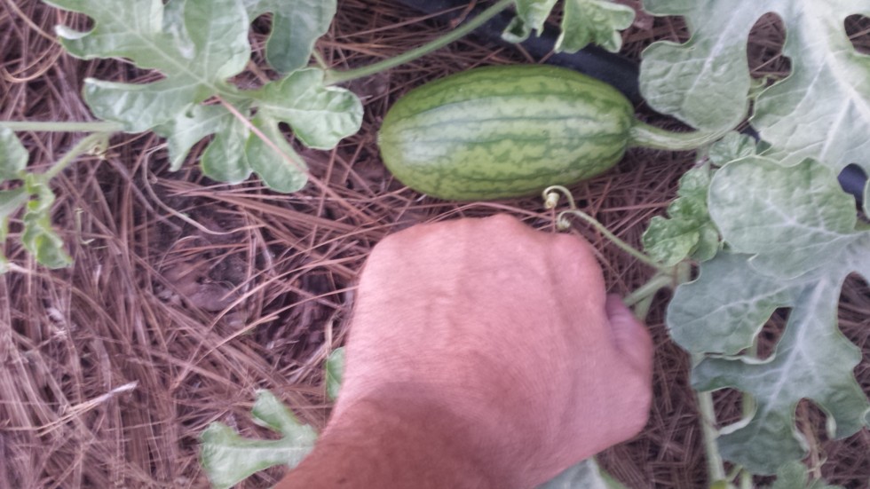 I did not select the file in the earlier post. Fist and melon as an indication of current size of this melon. Cool nights and slow growth. Heavy rains forecasted for this Wednesday.