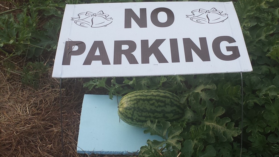Melon parking only !!! Temporary home for this melon until I have time to put up the permanent one.