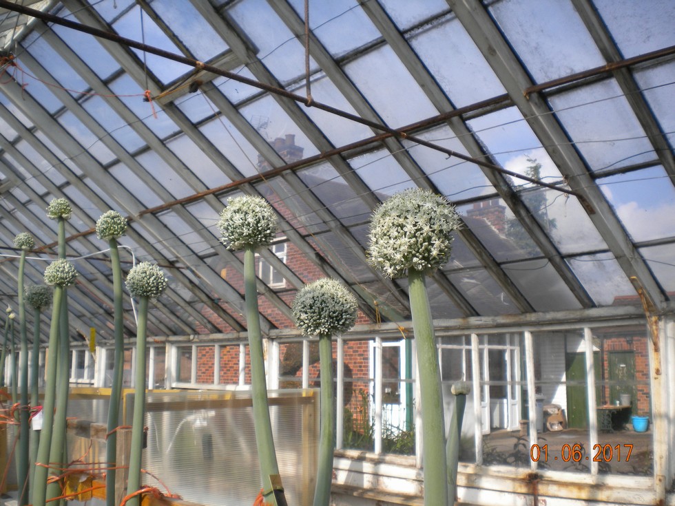 First seed heads are opening on my large Onions, plenty of insects to pollinate them.
