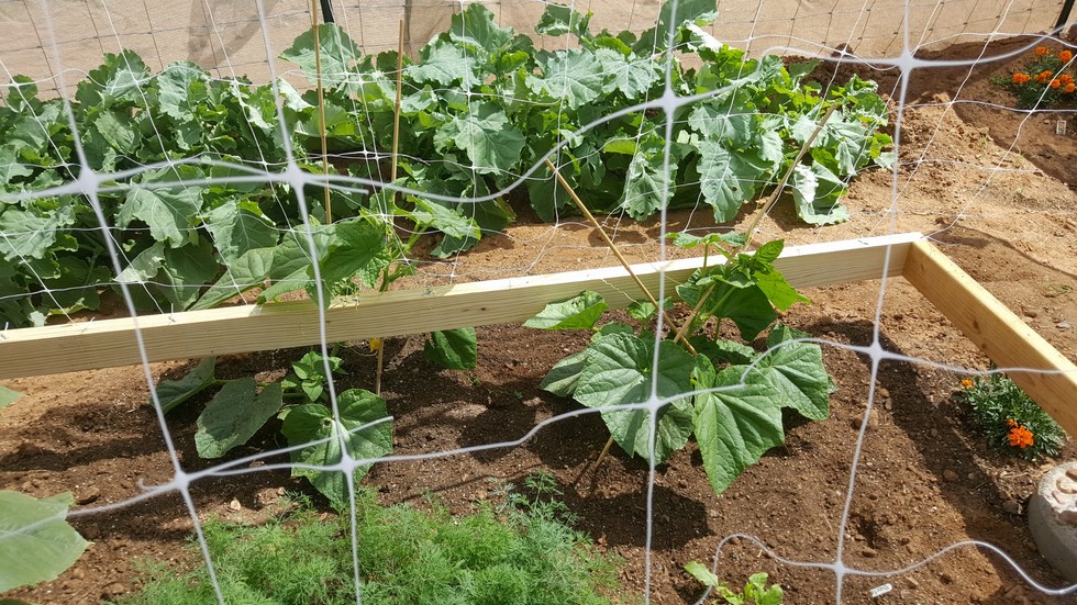 Cucumbers vines around 18 inches. Rutabaga getting bigger.