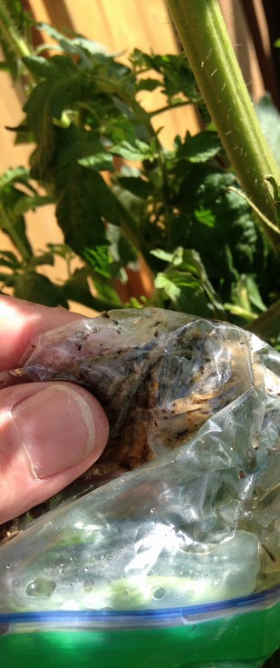 Puffing 2.0 > Here is the third puffing of the Rusty Red fruit....Simply squeeze the baggie and poke with a safety pin ....The air and E mix can be heard as it jets out of the baggies hole....The flow is directed over the Peduncle and fruit ball...