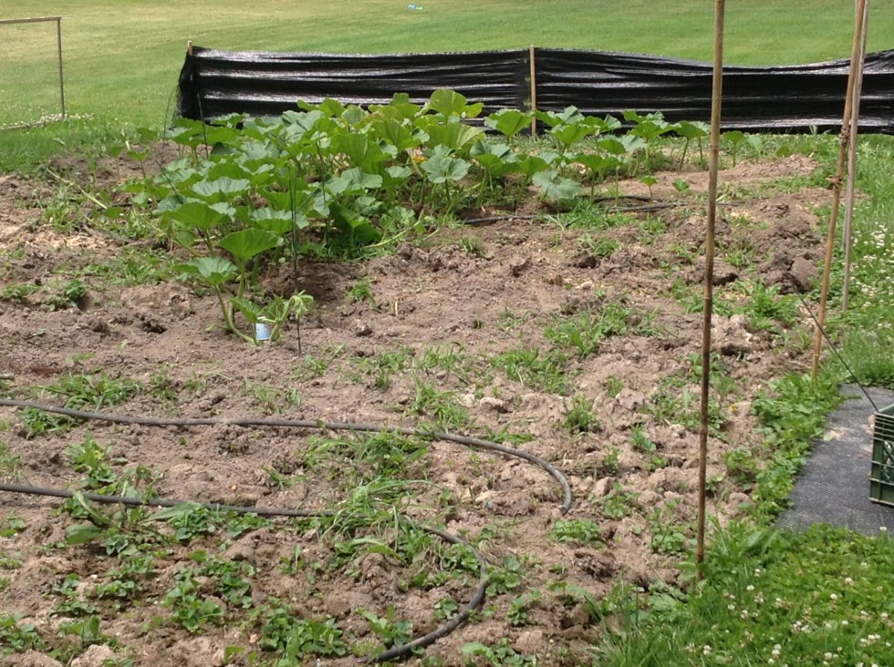 1844 Rose main vine at 16'. Next female flower is at 14'. First set of side vines were terminated on Sunday.